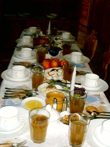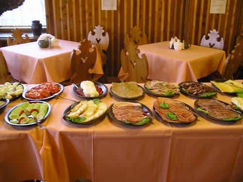 Rano na naszych Gości czeka bogate polskie śniadanie serwowane w formie bufetu. Króluje tu zapach świeżych chrupiących bułeczek, prawdziwego chleba, aromat serów i wędlin, a wśród bogactwa serwowanych potraw nie może zabraknąć naszego słynnego smalczyku "smaczek" i domowych konfitur. Poranny rozruch ułatwi pyszna kawa z ekspresu ciśnieniowego.