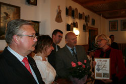 Agata Nowakowska-Wolak, szefowa Towarzystwa Opieki nad Zabytkami wręcza dyplom Elżbiecie Samek Fot. Rafał Gratkowski