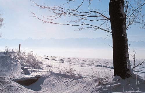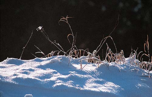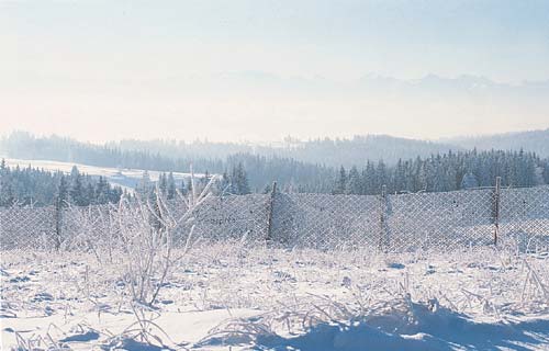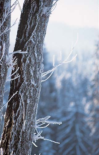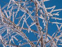 kilkunastostopniowy mróz pokrył szronem pozostałości letnich traw, bezlistne gałęzie drzew